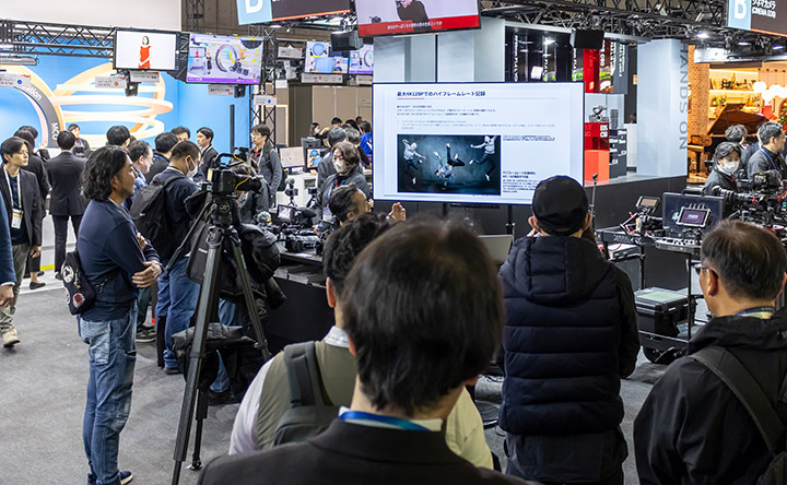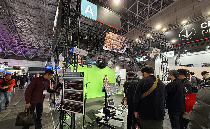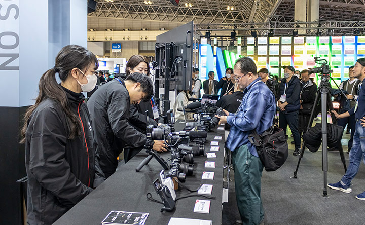 クリエイターたちが「自分の制作スタイルや作画に最適なカメラ選び」というプロフェッショナル視点で機材を見定める場として、シネマカメラ、ミラーレス一眼カメラ、業務用ビデオカメラなどをラインアップごとに展示しました。ファームウエアアップデートによる機能改善を、手にとり確認頂ける実機体験ゾーンを多数設置。終日、多くの来場者で賑わいました。