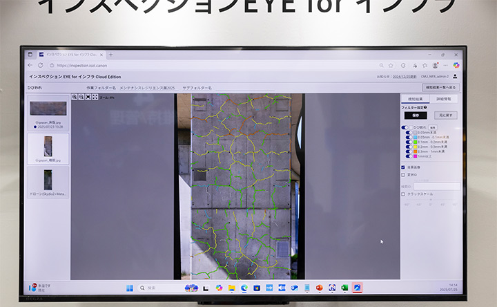 キヤノンMJは、「インスペクションEYE for インフラ Cloud Edition(AI技術を駆使したクラウドベースのインフラ構造物変状検知サービス)」により、次世代のデジタル点検システムを提供。