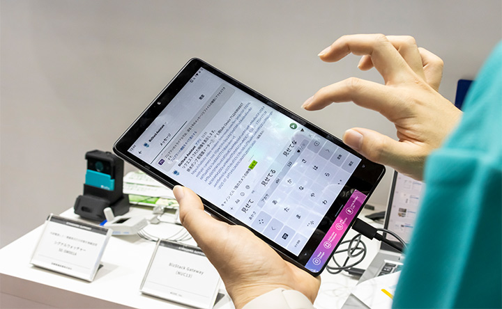 来場者からは「工事現場では熱中症対策として暑さ指数(WBGT)測定器を導入しているが、通常は現場で表示しているだけで、危険な水準になっても気付かず、対策が後手に回ることが多かった。しかし、BizStack Assistantに問いかけるだけで現在のリスクを把握したり、センサーから離れた場所でも通知を受信したりできるようになるので、現場の安全性が確保されそう」と期待が寄せられました。