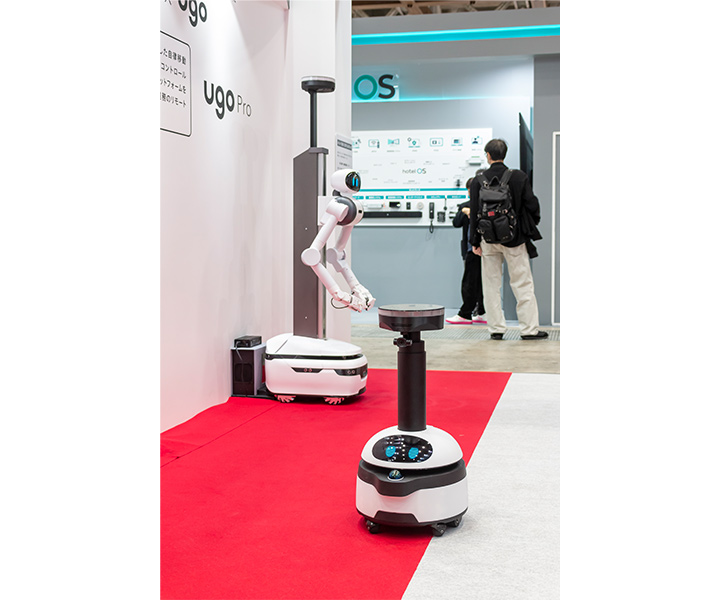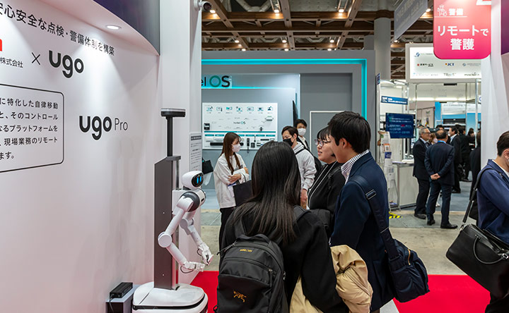 お客さまからは、カメラによる監視だけでなく「現場で物理的な対応ができる機能が欲しい」というご要望を数多くいただいています。そこで、今回は参考出品として、ugo社の業務DXロボットをご紹介しました。