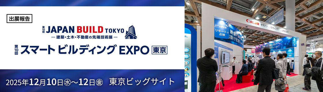 2025年12月に開催された※「スマートビルディングEXPO」は、ゼネコン、サブコン、ビル管理会社、ビルオーナーが来場するスマートビルの専門展示会です。キヤノンマーケティングジャパン(以下、キヤノンMJ)は、2040年に労働供給が約1,100万人不足すると予測される中、【映像×AIで現場DXを加速。「8掛け社会」に備えたリモート革新】をコンセプトに、現場業務における省人化・効率化・安全性向上を支援する、スマートビルディング向けソリューションをご紹介しました。本リポートでは、会場で注目を集めた3つのデモンストレーションを中心に内容をご紹介します。