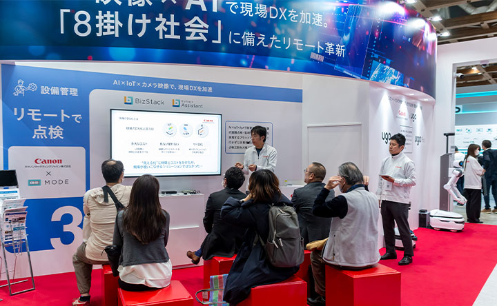 今回の展示では、タイムリープ社、ugo社、MODE社といった各領域の専門企業との共創を通じて実現した、現場DXの新たな形をご披露いたしました。「現場DX統合ソリューション企業」として、映像技術とIoTやAI活用で日本の社会課題解決に挑むキヤノンMJに、今後もご期待ください。