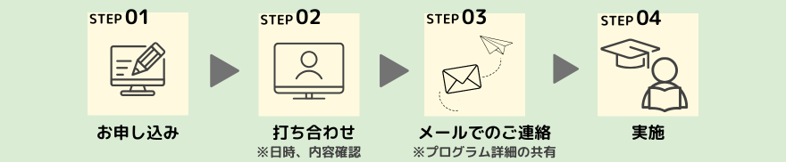 内容はご相談に応じて変更することも可能です。お問い合わせまたはお打ち合わせの際にお聞かせください。