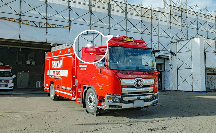 遠くにある火災現場の状況をより迅速かつ鮮明に確認するためには、車両の屋根上にカメラを設置する方が良いと判断しました。実際に、車両の屋根上に設置したことにより、現場に向かう途中でも遠方の火災状況を煙量や濃さから、その規模を予測することができました。