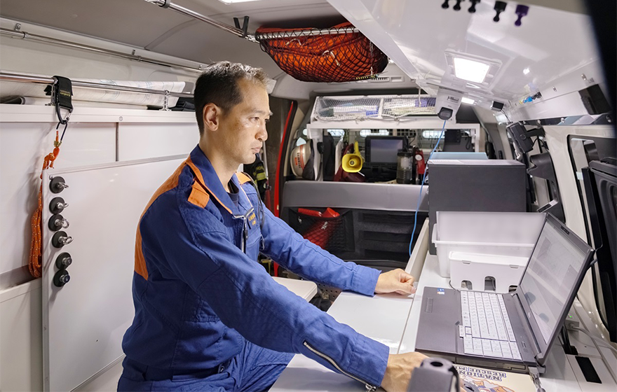 キヤノンS&Sは、お客さまの要望を丁寧にヒアリングし、単にクラウドカメラを取り付けるだけではなく、導入後の運用までを視野に入れた全体のプロジェクトマネージャーを担っています。消防車両の生産に関わる企業などとの調整、運用に必要なタブレットやタッチパネルモニタ、プリンタ等の周辺機器の導入・設置、ネットワーク環境の構築までを行いました。