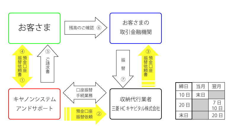 キヤノンシステムアンドサポートへのお支払いは預金口座振替をご利用ください