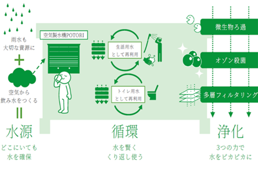 - 大気から安全な飲料水を生成する「空気製水機POTORI」の製造・開発等