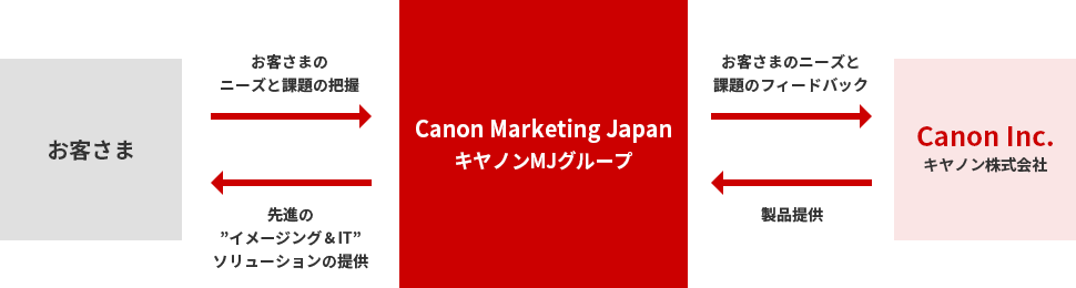 キヤノンマーケティングジャパンは市場や環境の変化、そしてお客さまのニーズに応える為、キヤノン製品のみならず国内外メーカーから優れた製品・サービスを仕入れ、お客さまにとっての+αの価値を提供しています。