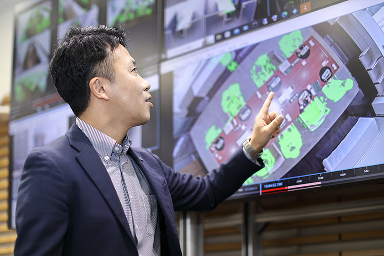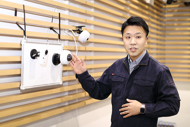 監視カメラシステム全体のことを扱うNVS(ネットワークビジュアルソリューション)企画本部にて、プロジェクトのマネジメントや施行管理を担当。ソリューションセールスが受注した案件を引き継ぎ、導入から保守に移管するまでの間、お客さまとキヤノンMJ、構築SIベンダーのエンジニアなどの間でフロントに立ってやりとりなどを行うのが役割です。お客さまの課題の把握や現場での構築・竣工までの顧客対応、導入前の商談の支援をすることもあります。同じチームには、キャリア採用のメンバーも多く、サーバー、ネットワーク、業務システム、プログラミングなど、何かしらの専門知識と経験を持っている人が集まっています。