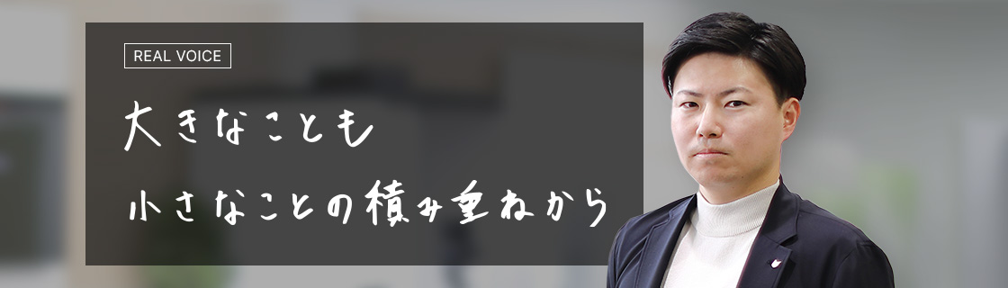 「小事は大事」。大きなことも、もともとは小さなことの積み重ねから。日々の細かな業務も、一つひとつ大切にしています。
