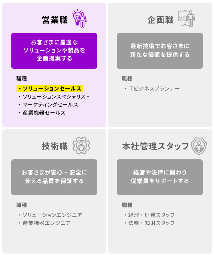 エリア事業戦略本部は、中小企業を対象としたソリューションの戦略推進を行う部署。その中で事業推進スタッフは、同じビジネスユニット内の各商品を担当する営業推進、商品企画、予算課や財務課など社内のさまざまな部署と連携し、実績分析や財務目標設定などを行う、事業の核となる存在です。事業部全体の利益計画や実施計画のとりまとめ、IR関連業務、事業部内のデータ分析と財務理解向上活動などを担っています。
