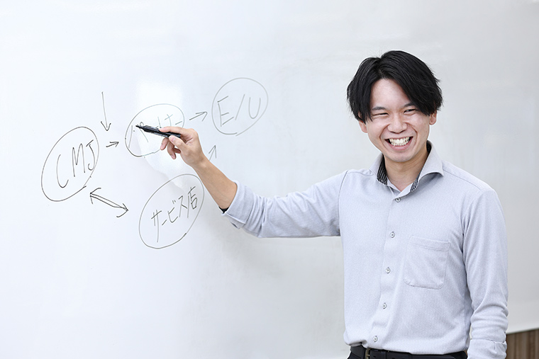 法務・知財スタッフとして、キヤノンMJのすべてのビジネスにかかわる契約書の審査などを担当している石田さん(仮名)。学生時代は自分自身を「営業向きのタイプ」と思っていたそうですが、なんと配属されたのは法務部。しかし、持ち前の高いコミュニケーション力を発揮しながら、現在はさまざまな部署と連携し、新しいビジネスを創り上げています。そんな石田さんに法務の仕事のやりがいや、法律の枠にとどまらない面白さについて話を聞きました。
