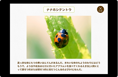 画面に隠されている生きものや不思議な自然現象を見つけ、クリック(タップ)することで解説をみることができます。