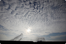 みんなは空を見て、「晴れ」「くもり」をどのように判断しているかな。雲の観測は雲の量が全体の1割以下なら「快晴」で、8割以下なら「晴れ」、9割以上なら「くもり」といっていたりするんだよ。