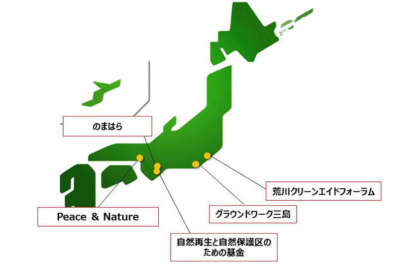 生物多様性の保全を目指す協働団体を公募し、審査基準に基づいて決定した下記の団体とともに市民参加型で取り組むプログラムを実施しています。