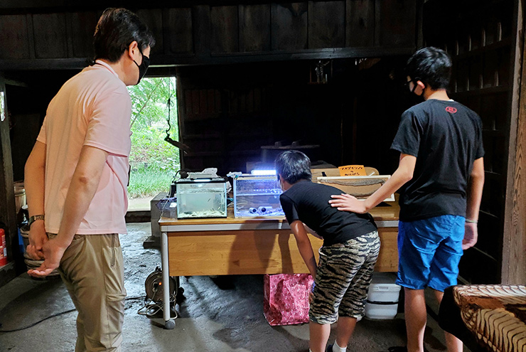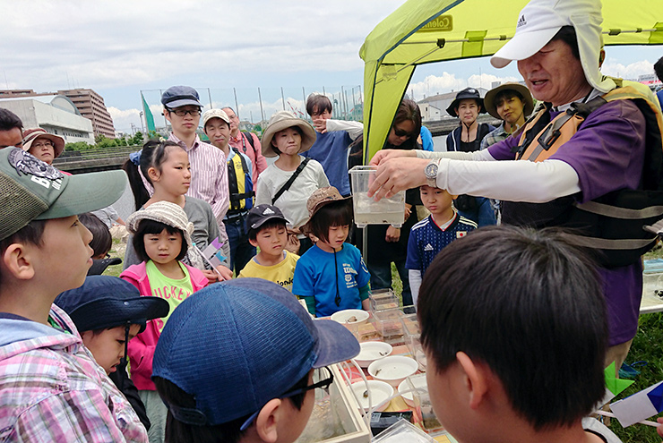採集した生きものを解説付きで観察しました。思ったよりたくさんの生きものを観察できて、参加者のみなさんは驚いていました。