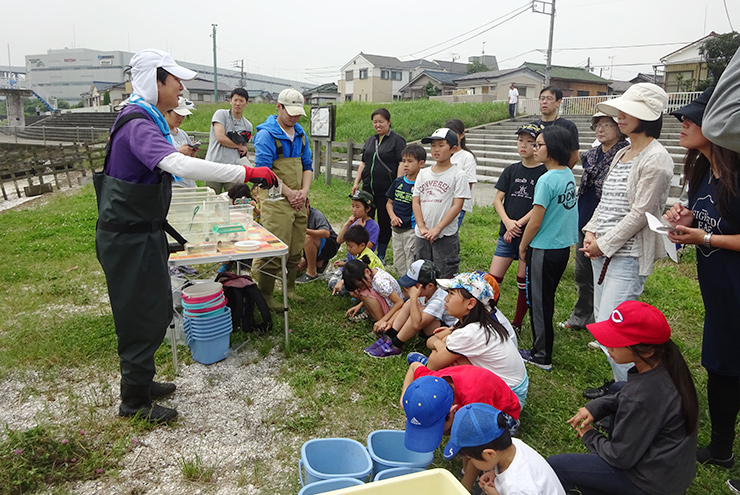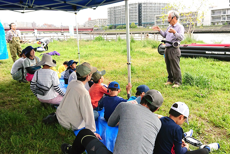 慶應義塾大学名誉教授・貝殻浜生物調査隊顧問の岸先生に、生物多様性を守るというのはどういうことか、分かりやすくお話しいただきました。生き物とたくさん触れ合った後には、少しだけお勉強もします。