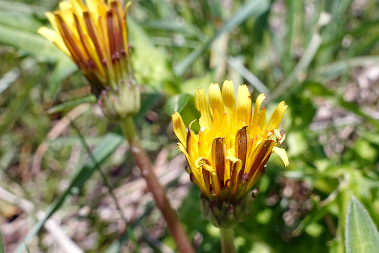 タンポポのなかでも珍しく山地に生育するツクシタンポポ。花は1日のうちの短い時間しか咲かず、きれいに咲いたツクシタンポポを見ることができるのは運次第!?この日観察したツクシタンポポは、これが最大限に開いた状態でした。