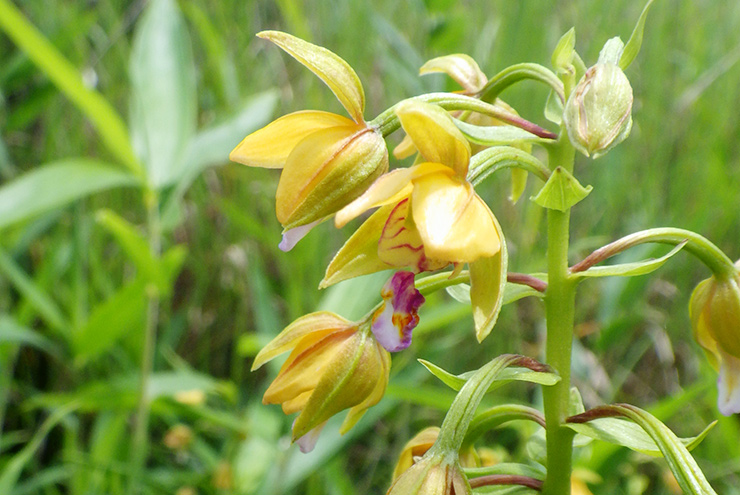 この日は日当たりのよい湿った土地に生育するカキランが花を咲かせていました。花色が柿の実の色に似ていることから、カキランと名付けられています。派手すぎない、風情のある美しい色です。