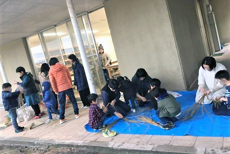 無農薬で育てた稲の藁を使って、しめ縄を作りました。