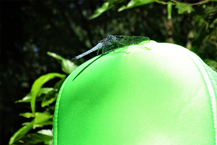 オオシオカラトンボが飛んできて帽子に止まりました。