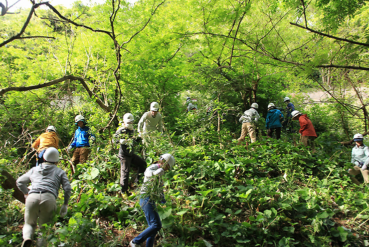 手入れがされてこなかったために、藪で見通しが悪くなっていた森を整備しました。見通しがよくなって、地面まで光が入るようになりました。