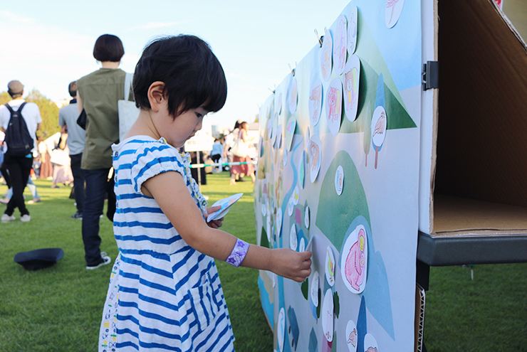 昆虫、両生類、鳥、動物などの塗り絵を通して、子供たちにさまざまな生き物を身近に感じてもらい、その生き物が実際に森里川海のどこに生息しているのかを考えて、森里川海のポスターに貼ってもらいました。 2020年10月