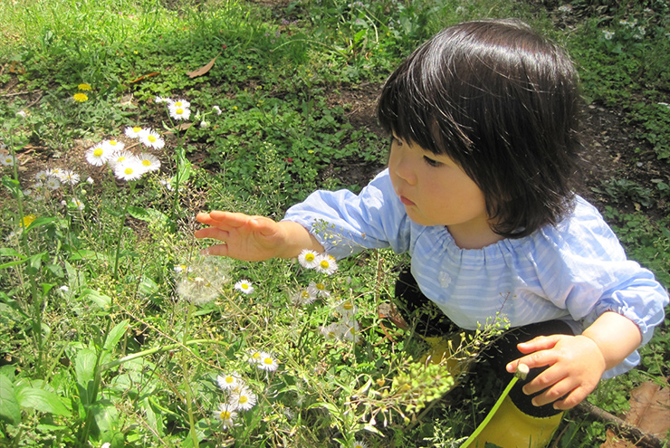 いろんな花が咲いている原っぱでみんな思い思いに遊びました。花を観察したり、たんぽぽの綿毛を吹いたり、四葉のクローバーを探している人もいました。春はたくさんのお花が咲いていて、わくわくしますね。