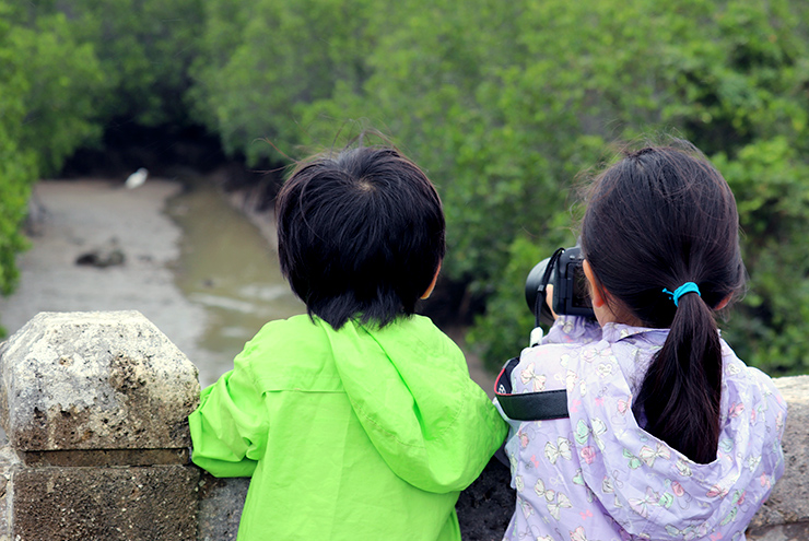 マングローブ林での写真教室では、いつもと違った視点でマングローブの生きものを探してたくさんの発見がありました。参加されたお母さんについてきた小学生も、一眼レフを構えて真剣でした。