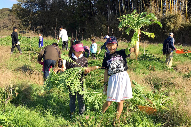 立派な大根を掲げる誇らしいポーズも素敵ですが、写真が教えてくれるように普通の畑と全く違う荒地のような環境で大根が育つという、「ビオトープ農法」のユニークさが伝わる写真です。他の草に負けないようにと育った大根はどんな味がするのでしょうか。