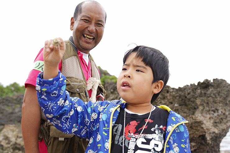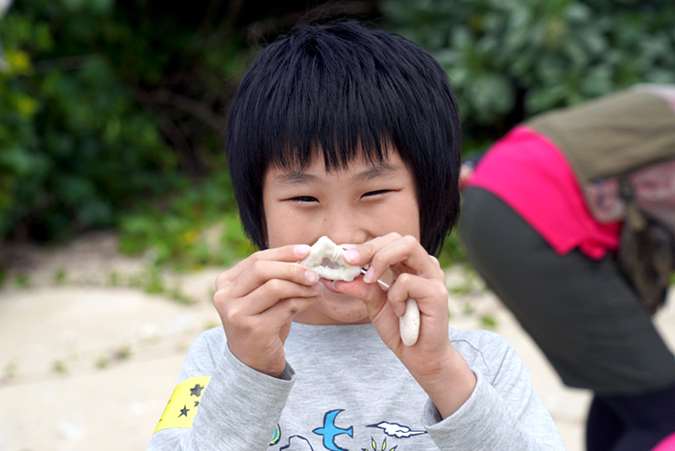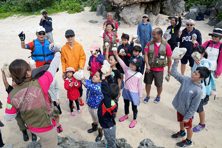 それぞれが個性的な形をしたサンゴ骨格を、自慢げに掲げていますね。楽しそうな表情も見て取れます。サンゴが個性的な形になるまで成長し、死滅し、浜に打ち上げられるまでの長い時を想像しながら観察すると、観察会の前後で海の見方が大きく変わってくるのではないでしょうか。