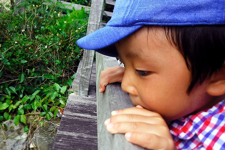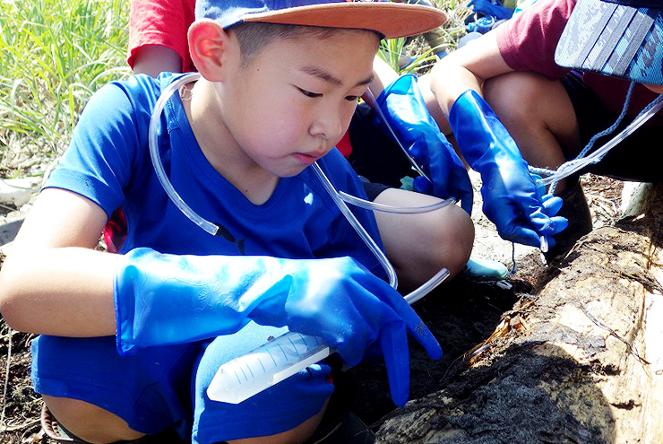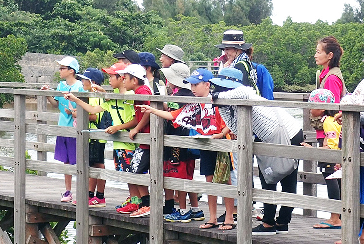 子どもたち自ら、マングローブの観察シートにあるさまざまな動植物を見つけていきます。