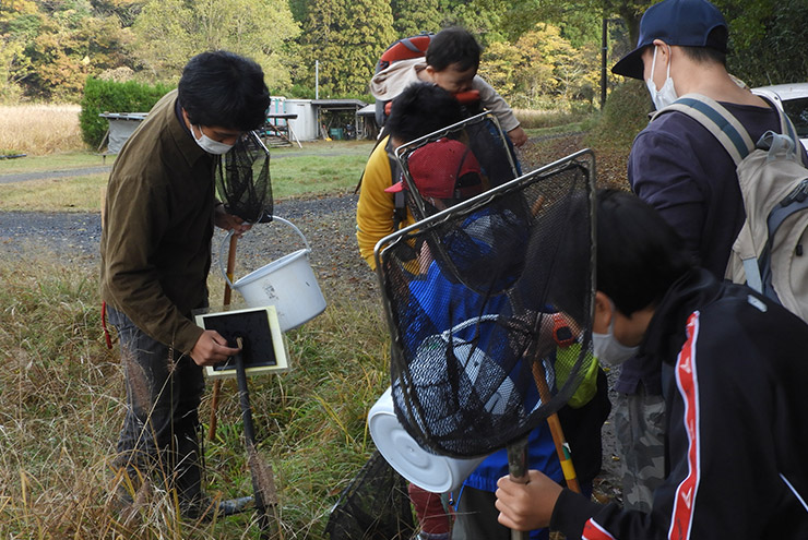 水生生物の採集に真剣になり長靴が水没しても続ける参加者もいました。採集された生物からまだまだこの地域は水質が保たれているようです。