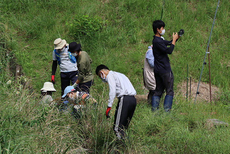 自然再生後、半年が経った湿地で生物調査をしました。調査をした高校生は、普段調査をしている学校周辺と比べ、当地の生物の多さ・外来生物の少なさに驚いていました。