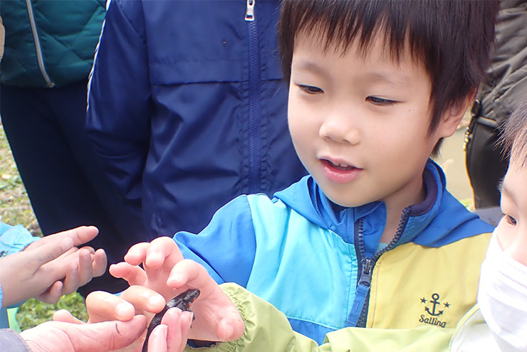 「やったーーー。イモリ!ずっと見たかった!」おそるおそる、そっと触ってみました。「かわいい・・・」12月でしたが、イモリはまだ冬眠せず活動していることを学びました。