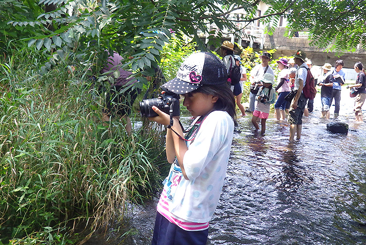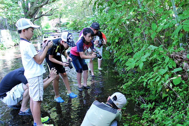 ひとり1台ミラーレスカメラを持ち、源兵衛川の自然や生き物を思い思いに撮影しました。また、撮影した写真にタイトルを付けて、フィールドマップをつくって発表し、源兵衛川の自然の理解を深めました。