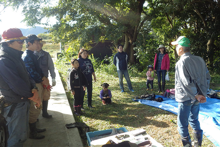 参加者も真剣に説明を聞いてますね。寿命の長い生き物を守る活動は、成果が見えるまで長い時を必要とします。地道な活動の重要性も伝わると良いですね。