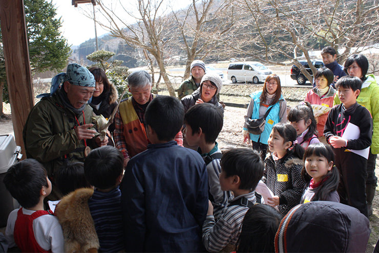 山里の古民家を利用した自然体験型環境学習に、狩猟活動も行う自然ガイド・インストラクターから、山里での昔の人の暮らしについて話を聞きました。