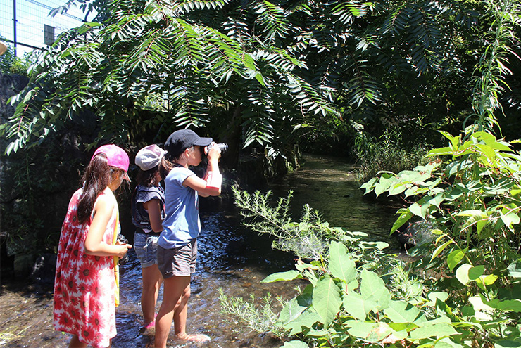 ひとり1台キヤノンの一眼レフカメラを持ち、源兵衛川の生き物や水中花・ミシマバイカモ、ふるさとの森、昆虫などを思い思いに撮影しました。
