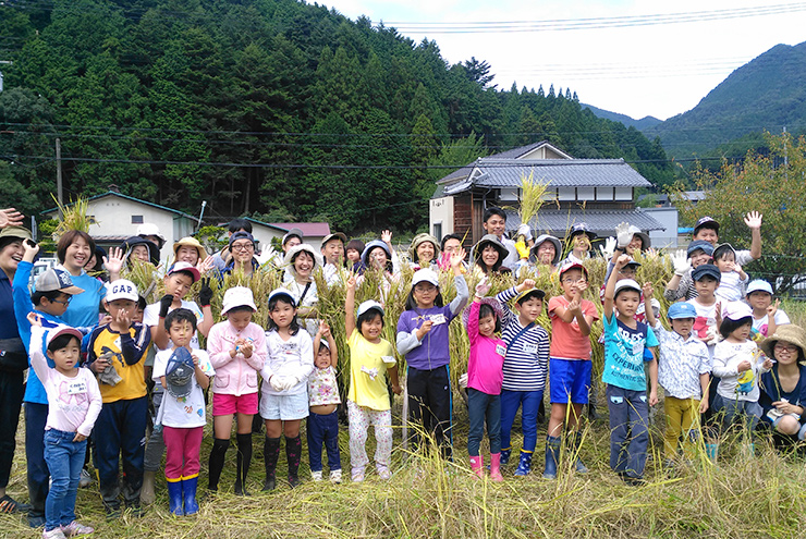 農薬・化学肥料を使っていない棚田での写真撮影会と稲刈り体験で命や食の大切さを伝えています。体験を通じて、「写真でいろいろないき物とふれあえました。」などの感想をいただきました。