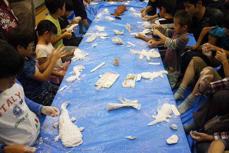 紙粘土をつかって、オオサンショウウオの生態模型づくりに挑戦しました。中にはカバとワニが合体した怪獣のようなオオサンショウウオも出現しましたが、全員よくできました!