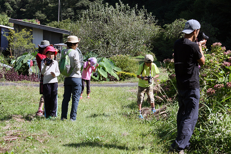 オオサンショウウオの棲む静かな山里で生きもの写真教室が開催、親子で参加する人もいました。この日は台風が通り過ぎて、青空が広がり、きれいな秋の写真が撮れました。