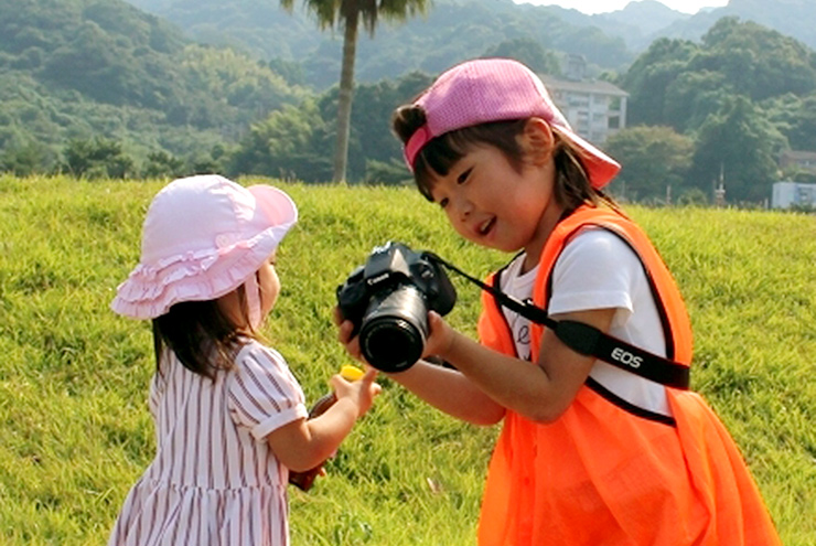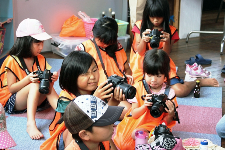 写真は伝える方法のひとつ。はじめて触れる一眼レフカメラに子どもたちは興味津々!「帰ったら、おじいちゃんに写真を見せよう!」そんな声も聞こえてきました。