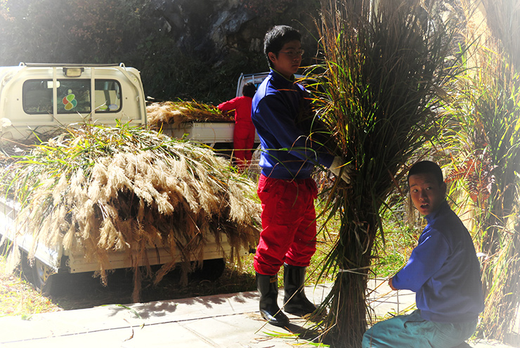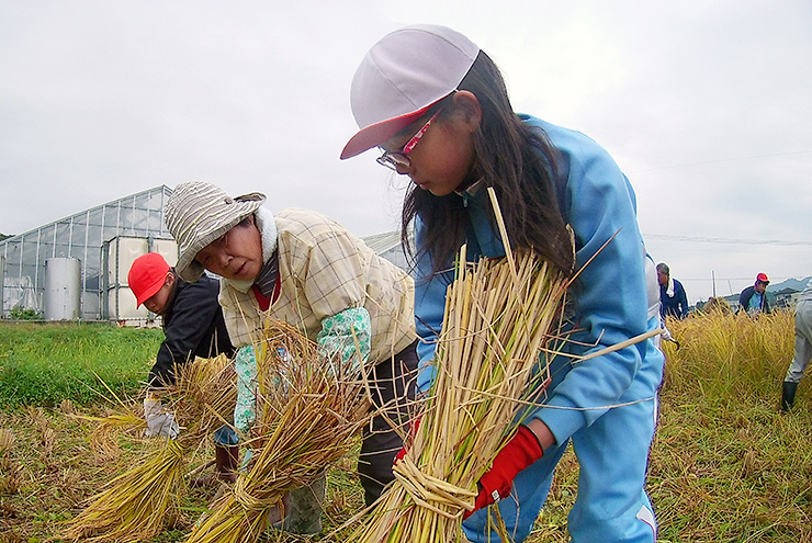 稲刈りは、稲を刈ってからが難しい。刈り取った稲を藁で縛る技術は、隔世的にしか伝えられない技術になってしまいました。日本の技術を伝える重要な文化を私たちはどれだけ大切にしてきたのでしょうか。