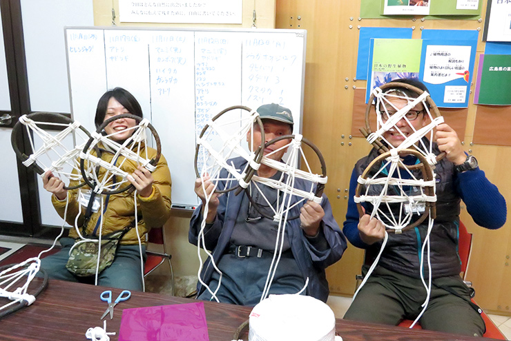 ヤマガマズミやヒノキを使って、地域のかんじきづくり名人からかんじきの作り方を学びました。作り方も各家で違ったと言われており、残していきたい技術です。