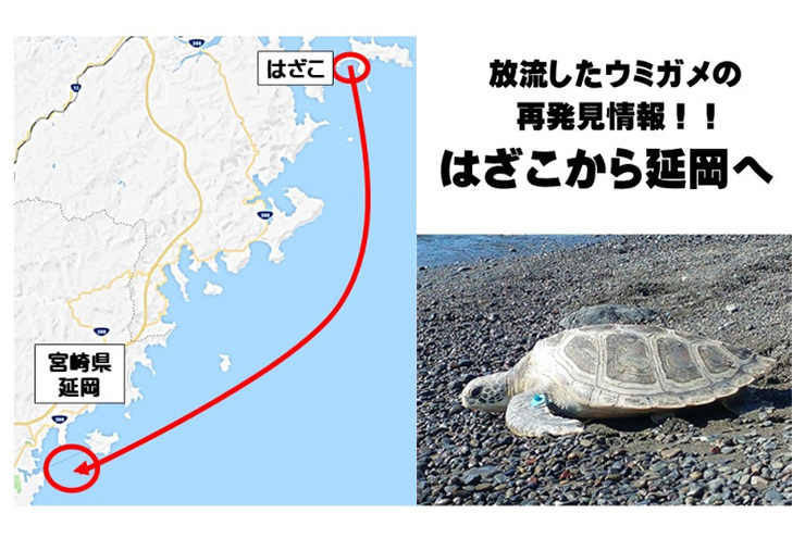 大分県から放流したウミガメが宮崎県で見つかりました。見つけたのは漁師さん。ウミガメに付けられたタグを見て電話をかけてきてくれました。一つ一つの点の情報がつながり、ウミガメを守る活動へとつながっていきます。