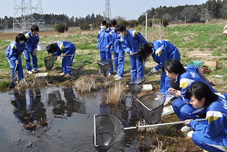 大胆に網をすくって観察している子もいれば、慎重に網を入れようとしている子もいて、個性が写真からもにじみ出ています。同じ場所でも、季節ごとに観察してみると、全く様子が変わりますので、そのような変化を学生の皆さんに見ていただくのもよいかもしれませんね。