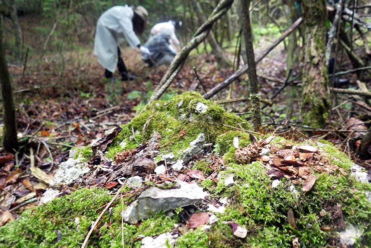 富士山麓には、多くの野生動物が棲息しています。二ホンリスが食事を終えた「レストラン」を発見。しかしその周りにも不法投棄されたごみが。リスたちもきっと森の奥からごみひろいの様子を見ていてくれたことでしょう。