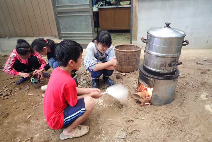 放置竹林で生まれた竹を燃料として活用してカボチャを蒸しました。竹の火力も強く10分もかからない内にカボチャが蒸しあがり、「こんなにあっという間なんだ。」という声が聞かれました。