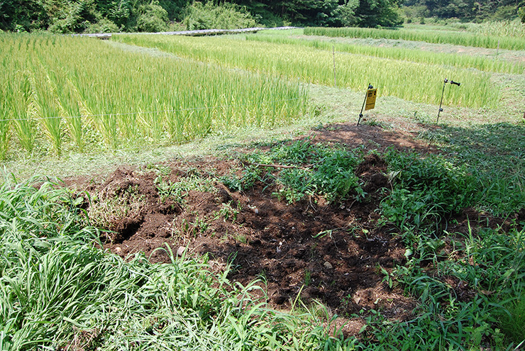 40年放棄されてきた棚田を開墾。今年で2回目の田植えを行いました。すくすく育ち、稲穂っぽくなってきました。そこに、イノシシ到来の賑わい跡が!夜に里におりてきたのでしょう。掘り起こした跡がありました。